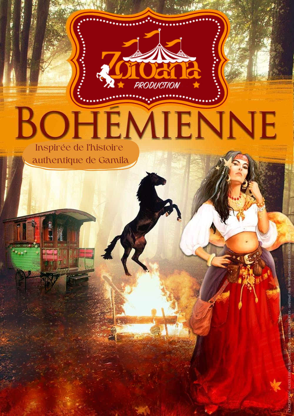 “Depuis la nuit des temps, une famille de bohémiens vit au rythme des spectacles qu’elle propose aux habitants des villes et des villages pour les amuser, et les émouvoir. Elle ne passe pas inaperçue lors de ses voyages avec ses caravanes colorées abritant le clan, les chevaux, les agrès, en somme les traditions. Mais voila que la jeune et belle bohémienne se lasse de cette vie de clan, elle voudrait voir le monde à travers ses propres expériences, elle voudrait rencontrer d’autres personnes, peut être de nouveaux amis, peut être l’amour…”